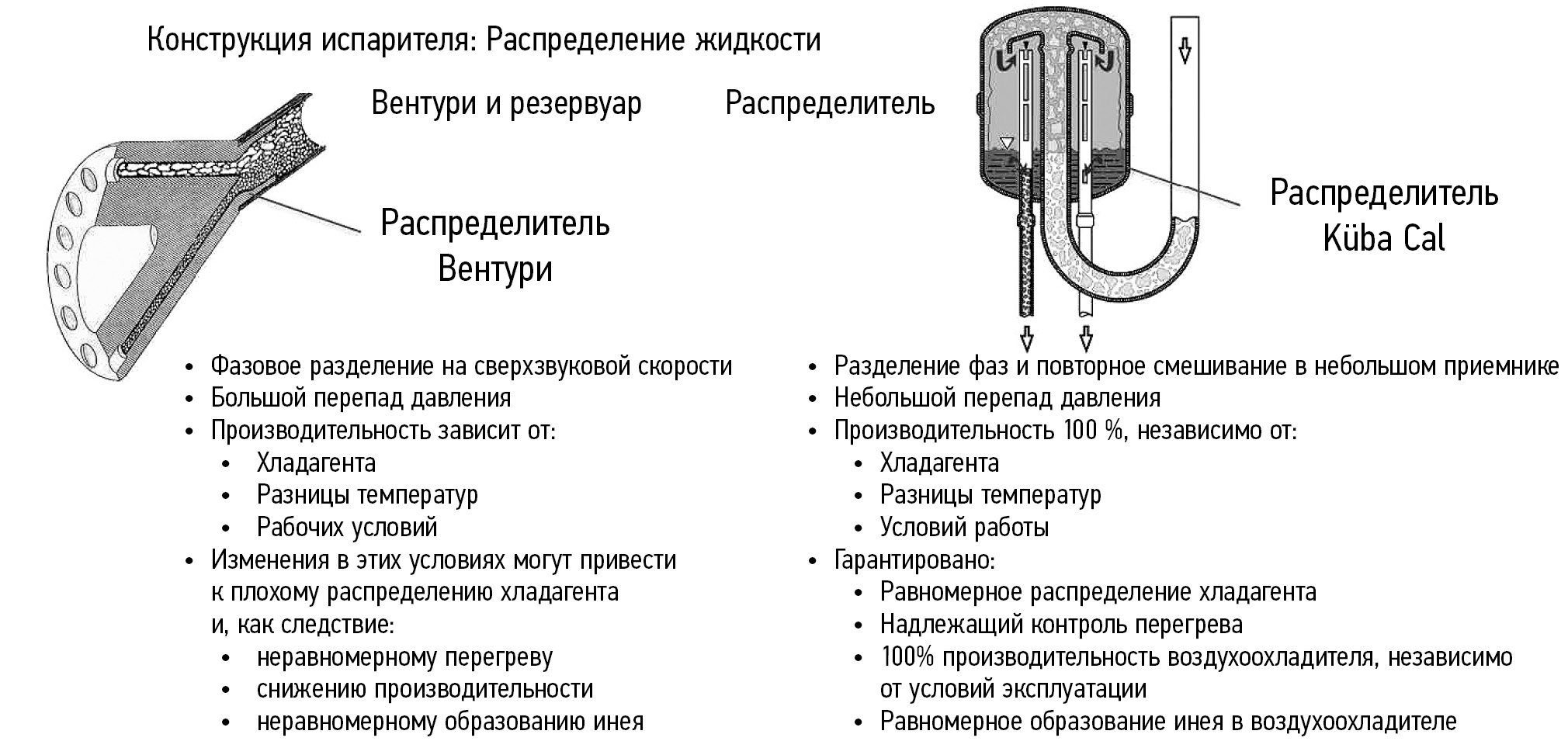 Рис. 2. Распределение жидкости в системе Вентури и Küba Cal (Kelvion/Küba).