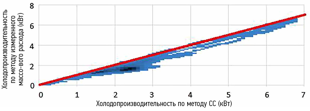 Рис. 10. Сравнение холодопроизводительности по методу CC с измеренным массовым расходом.