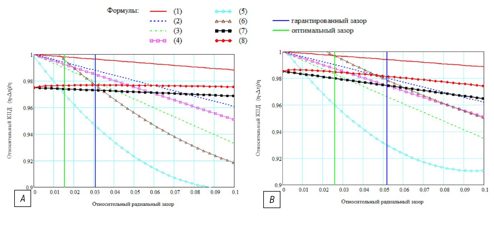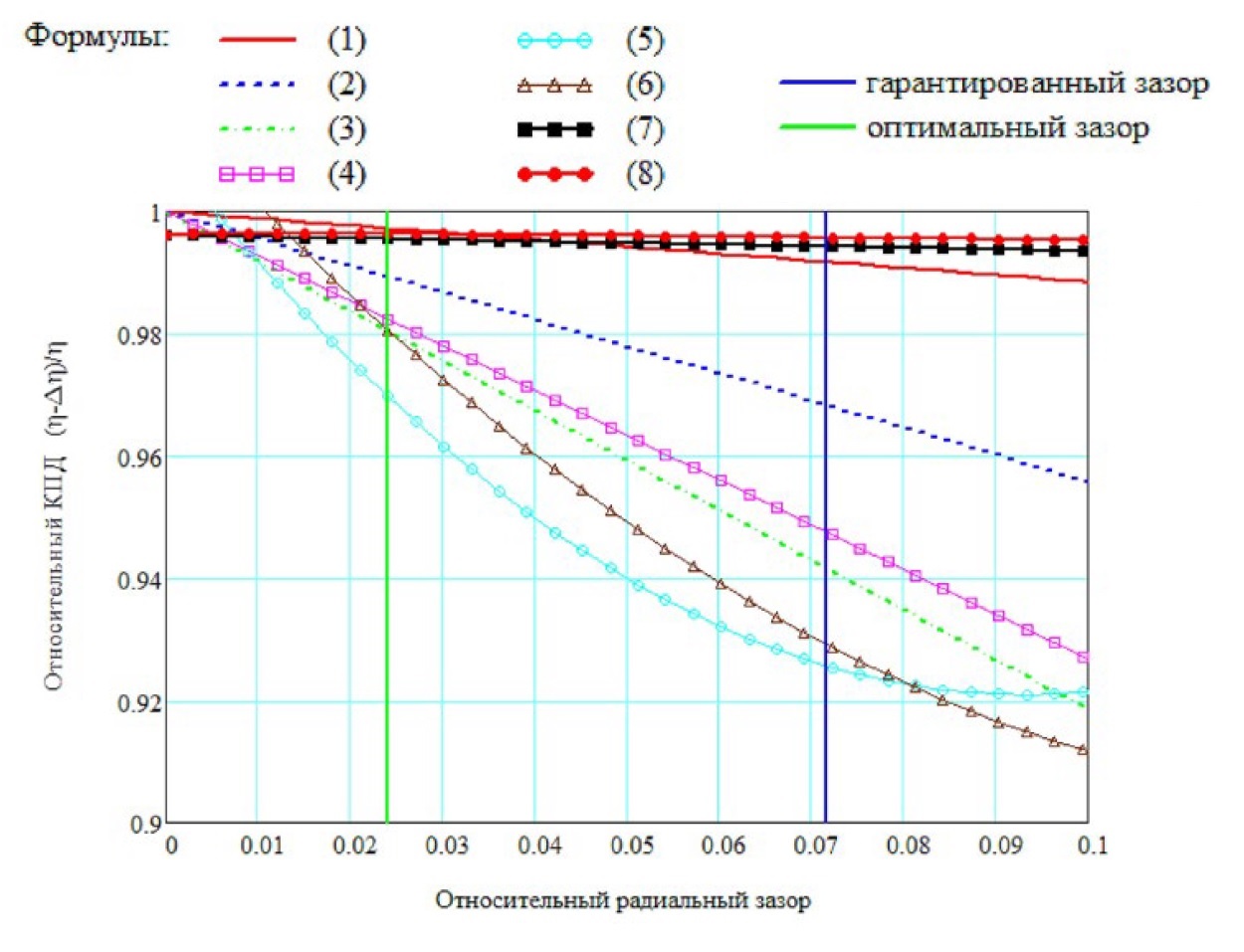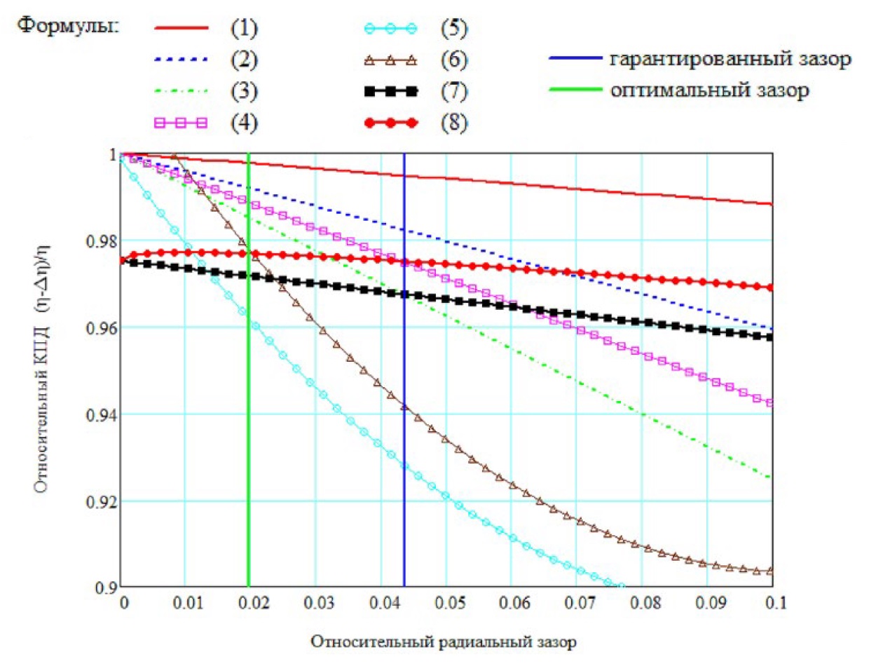 который выражает зависимость потери эффективности от величины зазоров при увеличении относительного радиального зазора