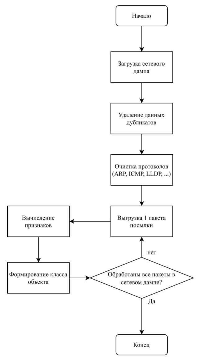 Рис. 4. Алгоритм формирования признакового описания для идентификации приложений по сетевому трафику