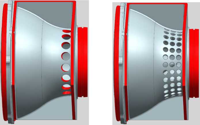 Рис. 8. Исходная и доработанная конструкции напорного патрубка водометного движителя